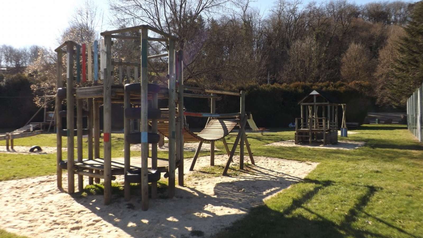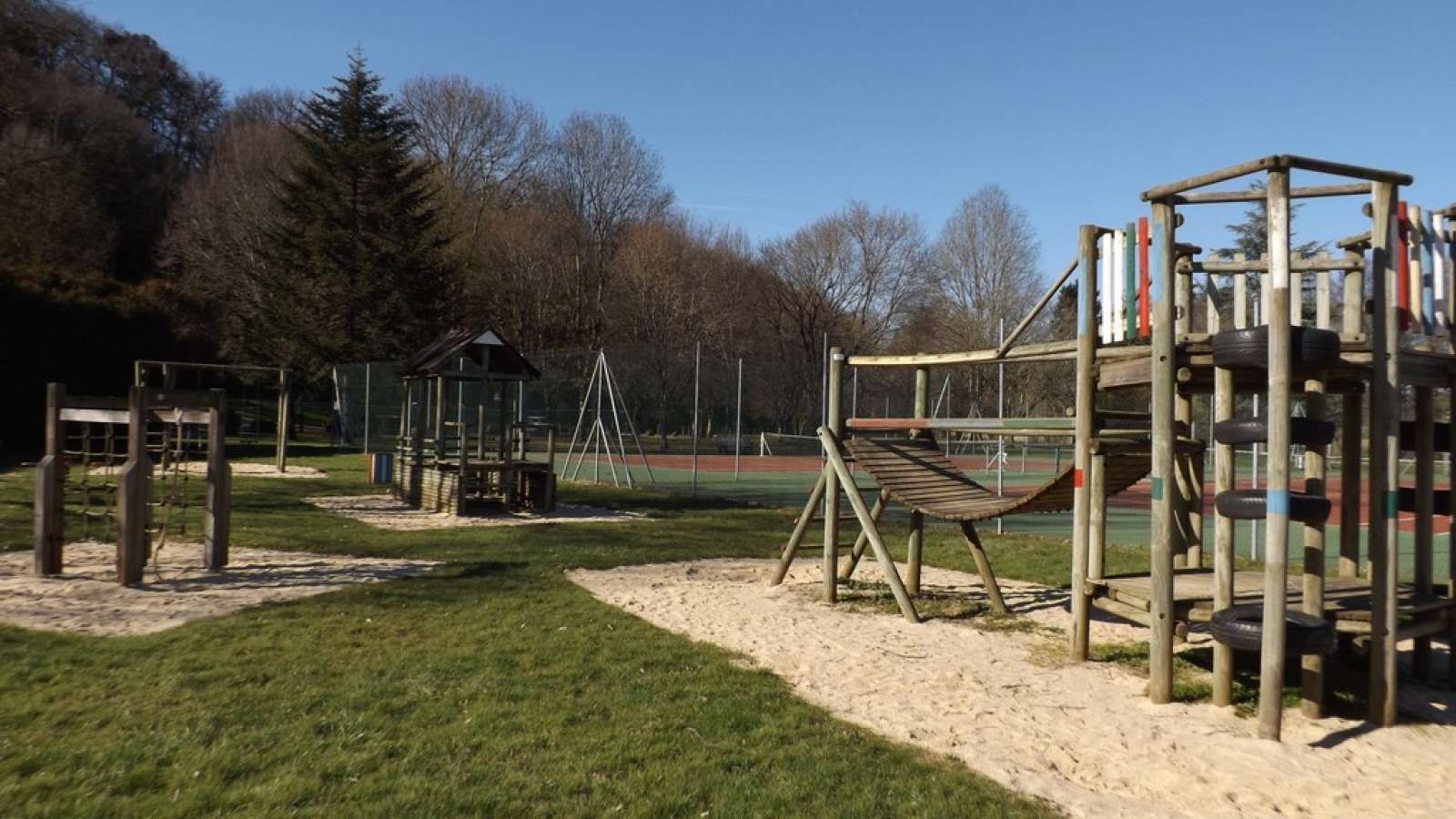 Pour faire une pause en famille à Feuillade. Tables, bancs, nombre important de jeux de plein air pour petits et grand ! (tyrolienne, cage à poules, balançoires, pont en bois, footsteps...), point d'eau.