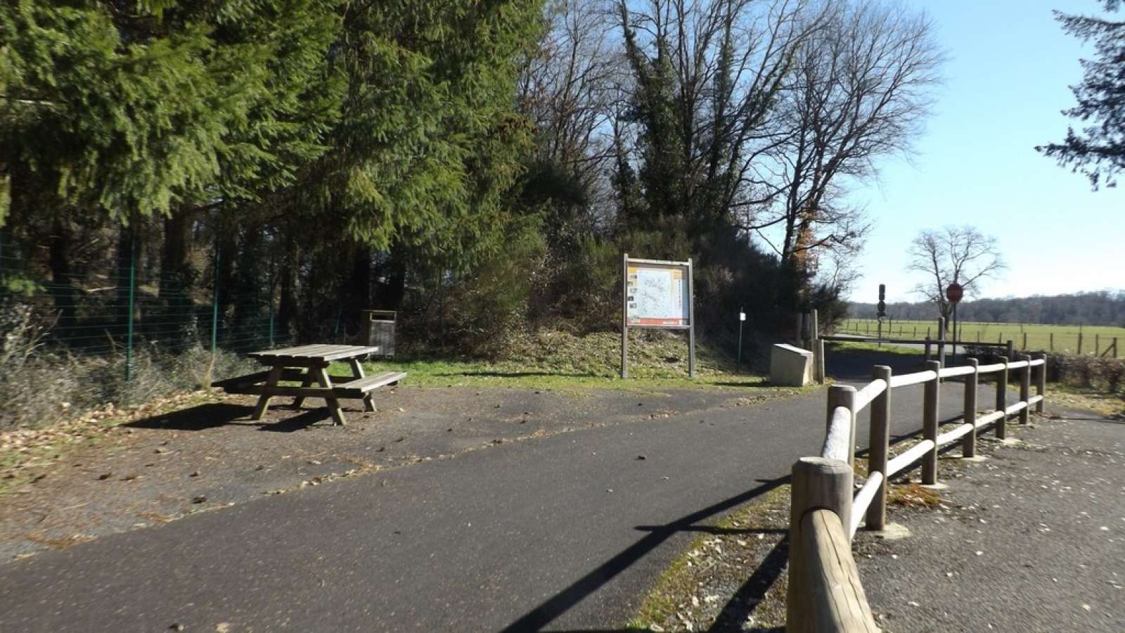 Aire de pique-nique, près de la Flow Vélo et à la frontière de la Dordogne. Aire de pique-nique le long de la Flow Vélo, tracé itinéraire Nontron-Marthon. Tables, bancs, grand parking. Panneau infos randonnées.