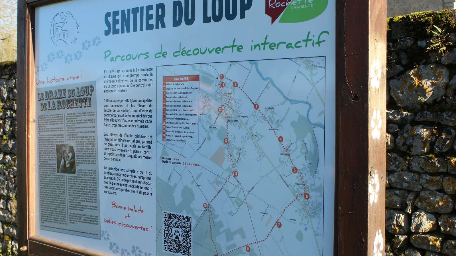 Parcours découverte sur le thème du loup, en référence à un événement tragique survenu dans la commune en 1874. La parcours vous emmène de hameau en hameau, jusqu'en lisière de forêt. En 1874, un drame survient sur la commune de La Rochette, où le loup a joué un rôle central. 150 ans après, la municipalité, des bénévoles et des élèves de l'école ont choisi de commémorer cet événement en créant un parcours de découverte du village et de l'espèce animale trop méconnue des humains. Cet itinéraire ludique, jalonné de panneaux à scanner avec votre smartphone pour répondre aux questions, vous permettent de découvrir les hameaux de la commune jusqu'en bordure de forêt. Environ 2h30 - 5km. Balisage : traces de peinture blanche en forme de pattes de loup.