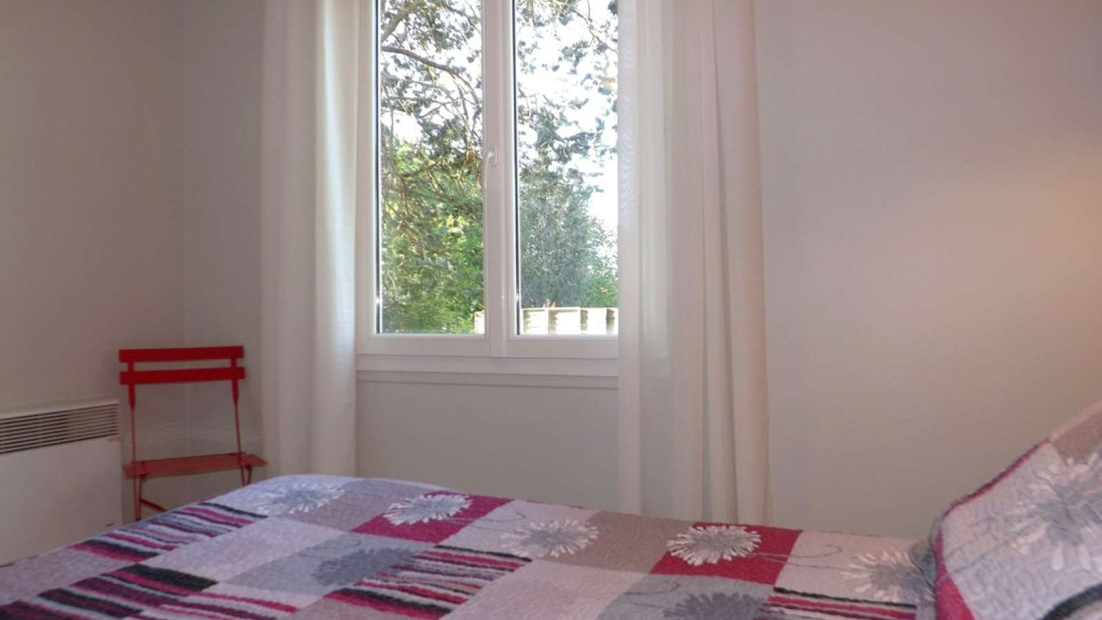 Gîte entre La Rochefoucauld et Montbron. Gîte de vacances, ce meublé individuel de 42m2, de plain-pied, est situé sur un terrain clos arboré de 2200m2, dans un village à mi-chemin entre La Rochefoucauld et Montbron, Porte du Périgord. Le meublé peut accueillir 4 personnes, il comprend 3 pièces de vie : un coin cuisine dans la pièce principale, deux chambres avec 1 lit pour 2 personnes et 2 lits pour 1 personne. Une salle d'eau, des wc indépendants, une buanderie et un débarras complètent l'ensemble. Pour profiter du jardin et de la quiétude des lieux, une terrasse et son salon de jardin vous attendent.