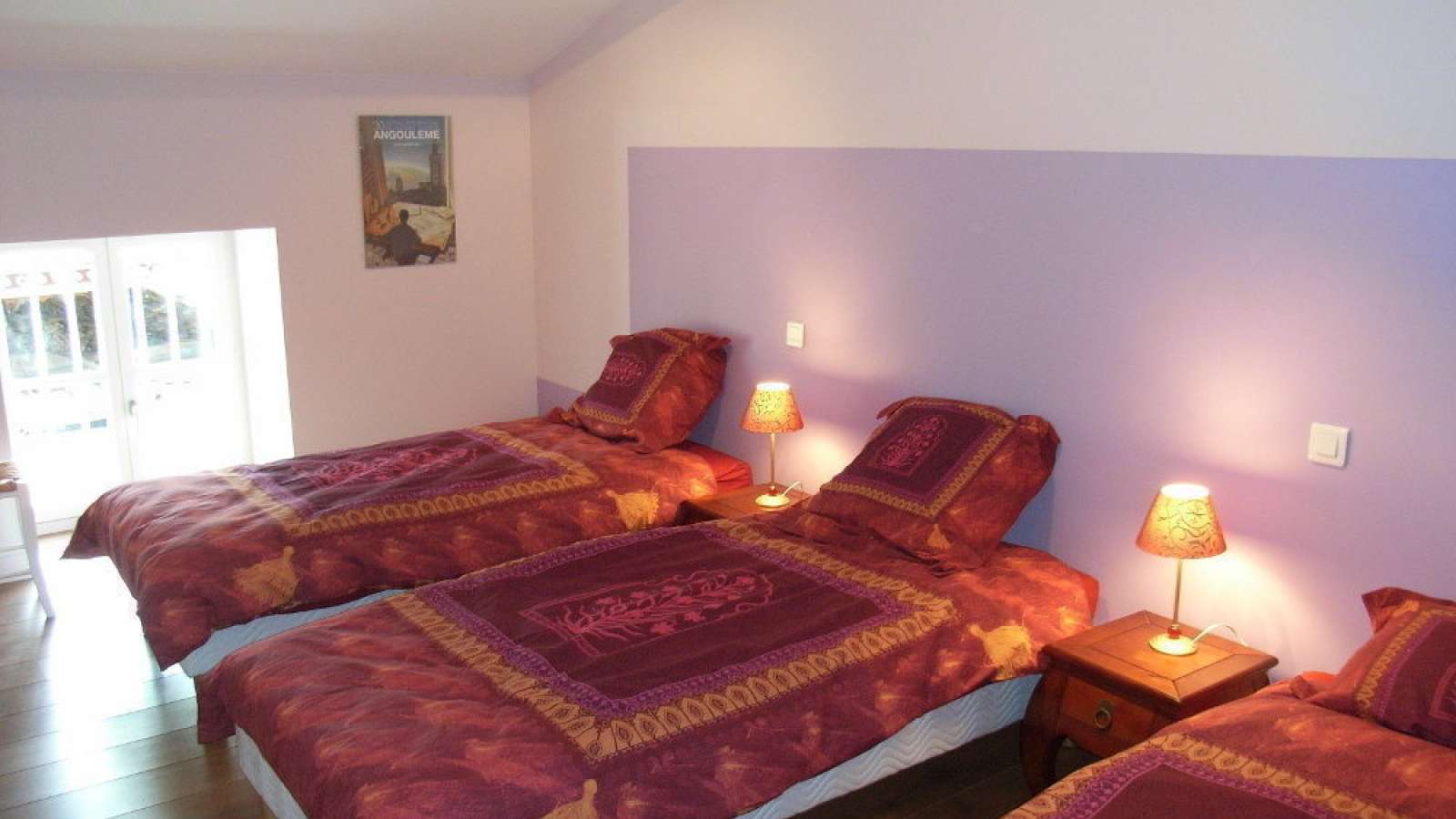 Gîte indépendant, dans un hameau calme, près de La Rochefoucauld. Gîte indépendant attenant à une grange, à proximité de la maison des propriétaires, dans un hameau proche de La Rochefoucauld. Rez-de-chaussée : séjour (cuisine, salon, salle à manger) avec poêle à bois (bois fourni), wc, cellier, patio extérieur avec un ancien four à pain. Etage : une chambre avec 1 lit 140, une chambre avec 3 lits 90, salle d'eau, wc indépendants. Jardin clos privatif (100 m2). Draps et linge de toilette fournis, lits faits à l'arrivée, chauffage à régler sur place (sur relevé). Table de ping-pong. Départ de nombreux sentiers de randonnées.