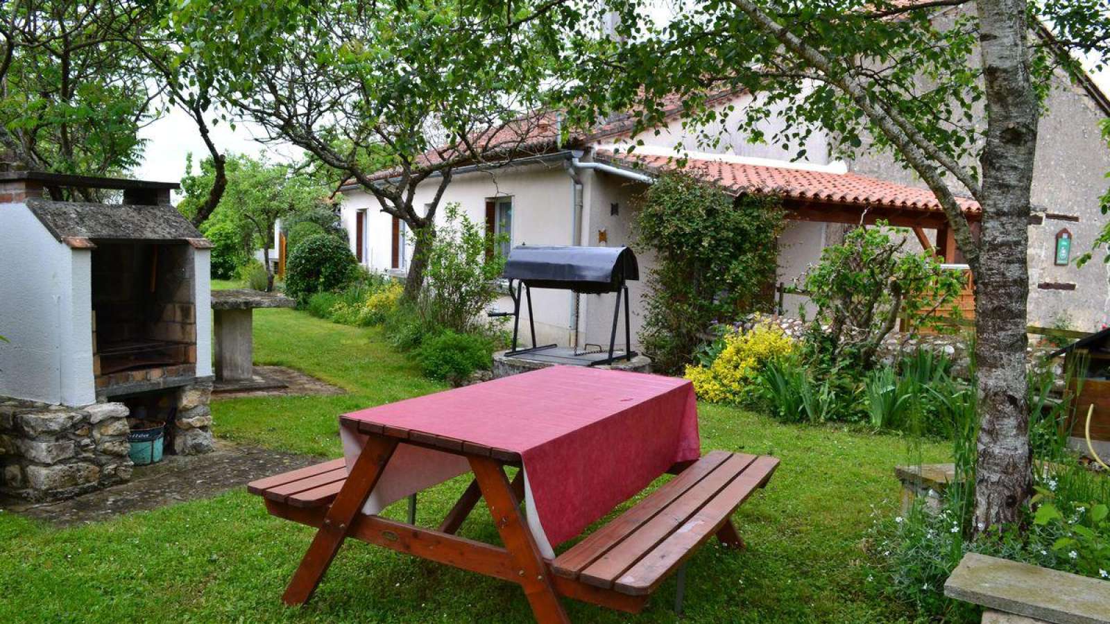 Gîte près de Montbron. Ce gîte, situé dans un village à proximité de Montbron, est une maison indépendante de plain-pied (accès par 2 marches), au cœur d'un jardin clos ombragé et fleuri. Il offre un séjour avec coin-cuisine, une chambre avec 1 lit 140, une autre chambre avec 1 lit 140 + 1 lit 90, une salle d'eau, wc, et un petit salon avec espace bébé. Lit bébé, chaise haute, table à langer sont à disposition. Abri voiture, préau, cour et grand jardin clos (1800 m2) privatifs avec aire de jeux pour enfants (portique, toboggan, balançoire...), table de ping-pong sous abri, boules, VTT/VTC. Circuits de randonnée à proximité. Draps fournis, chauffage à régler sur place sur relevé en basse saison et midweek.