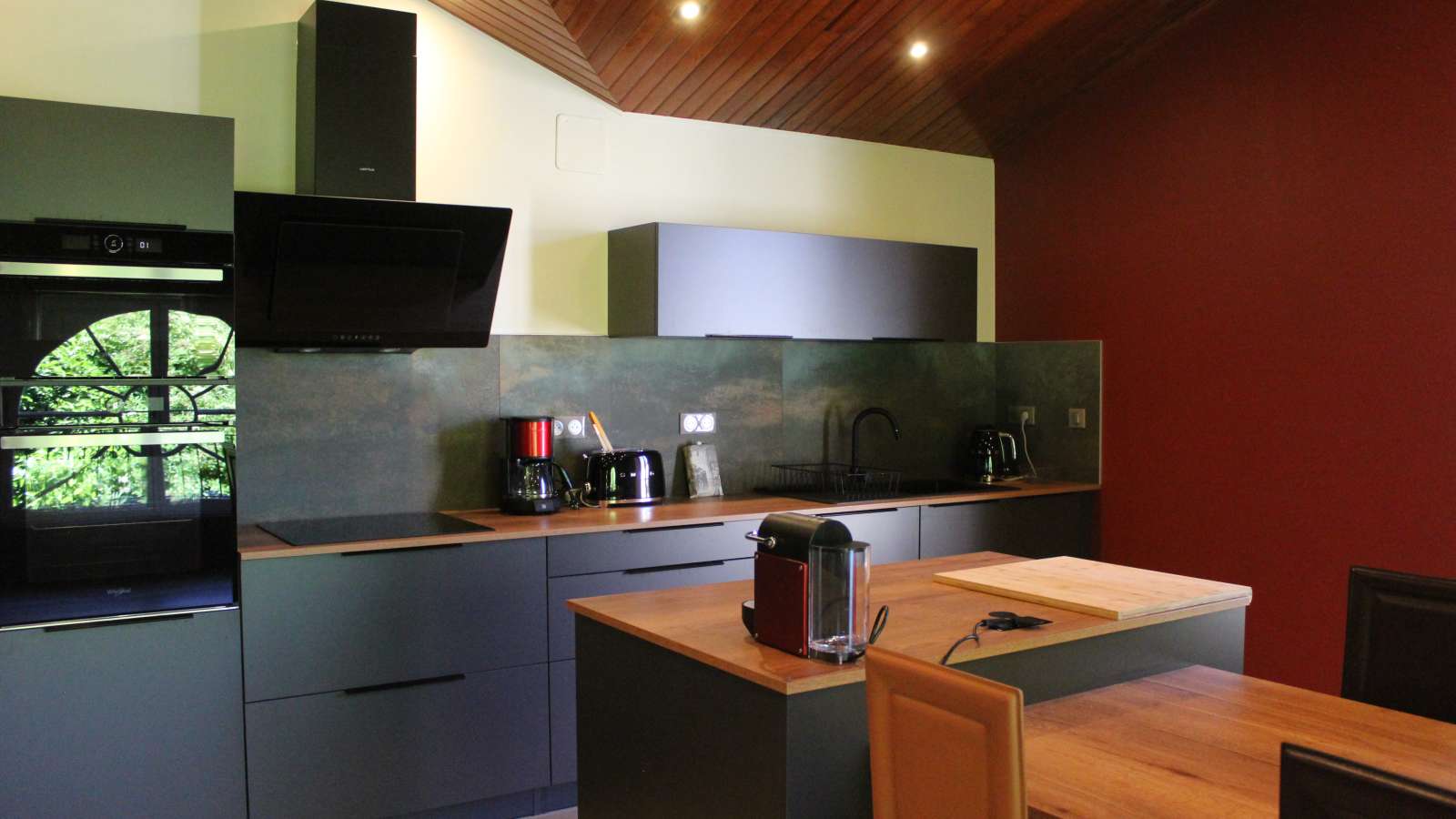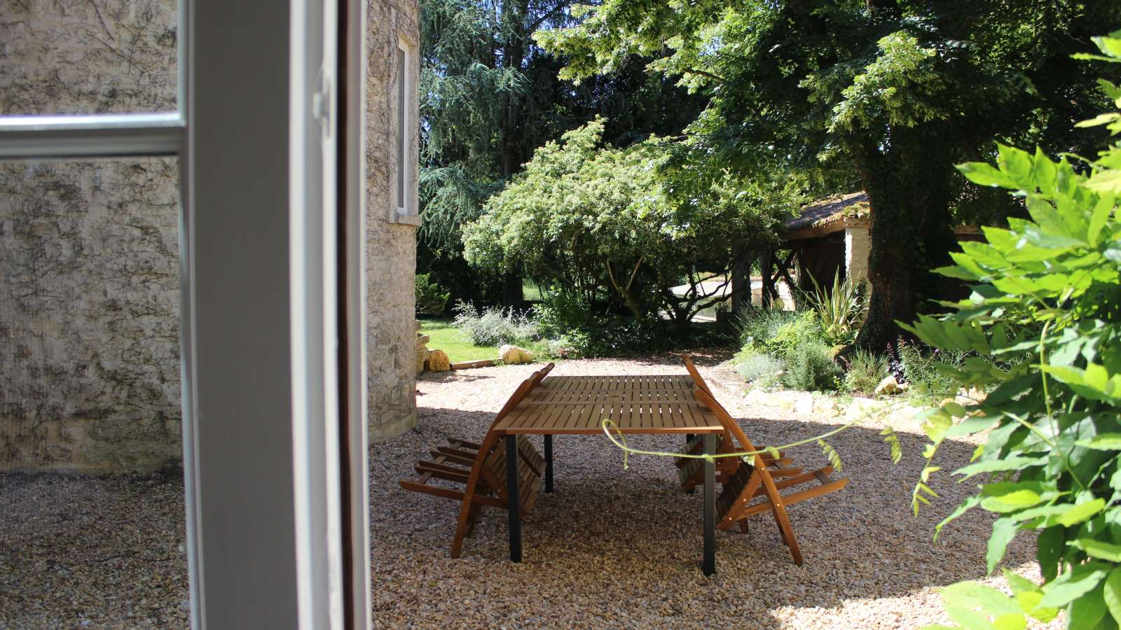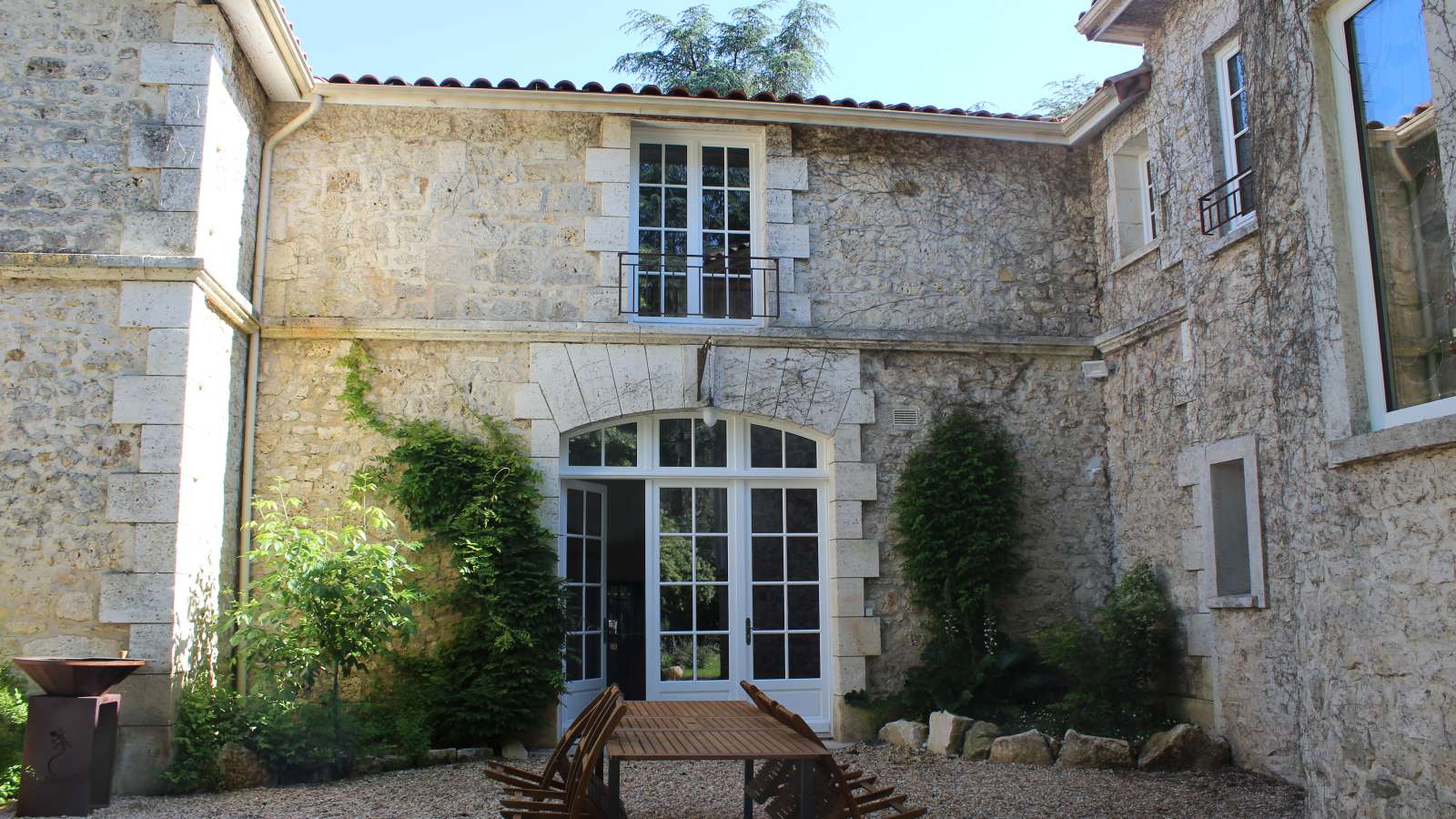 Une jolie maison rénovée au cœur de la nature, sur une propriété de près de 8 hectares avec piscine. A quelques minutes de La Rochefoucauld-en-Angoumois, cette propriété de près de 8 hectares, dont le terrain est entièrement clos, vous impressionnera dès son entrée : une allée majestueuse vous mènera jusqu'à la maison et sa piscine. La maison de 133m2 , exposée Sud, mitoyenne à un plus grand gîte, est confortablement aménagée afin de loger 5 personnes. Au rez-de-chaussée se trouve une cuisine d'été avec tables, réfrigérateur, micro-ondes, WC indépendants et un accès à la buanderie commune à l'autre gîte. L'étage se compose d'un séjour avec cuisine aménagée, une chambre avec 3 lits simples avec salle de bain et WC privatifs, une chambre avec 2 lits simples, salle d'eau et WC indépendants. Les lits peuvent être modulés et préparés en lits simples, lits jumeaux, ou lit double. La maison est mitoyenne à un second gîte, la piscine est commune aux deux hébergements. Entrées indépendantes et cours privatives. Possibilité de louer les deux gîtes pour une capacité maximum de 15 personnes. Piscine chauffée, (11,3 x 3,8 m), ouverte de juin à fin septembre, de 10h à 21h. Possibilités d'activités sur place : visite sur demande d'un site de production de spiruline par les propriétaires, randonnée, vélo, échecs et billard. Restaurant à Pranzac. Chiens acceptés avec supplément (chats sur demande).