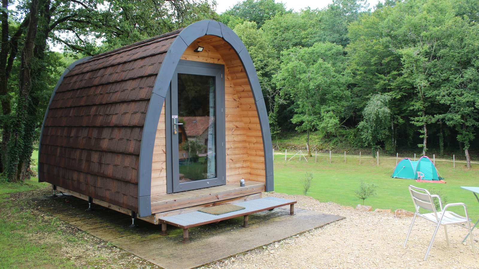 À Chazelles, le camping du Buron invite à une parenthèse originale avec ses pods en bois, de petits habitats insolites pensés comme de véritables alcôves intimistes, parfaitement en harmonie avec la quiétude des lieux. Nichés au cœur d’un aménagement paysager soigné, quatre pods chaleureux, d’une superficie d’environ 10 m², accueillent les voyageurs en quête de calme et de déconnexion. Certains, volontairement dépourvus d’eau et d’électricité, offrent une expérience encore plus authentique, au plus près de la nature. Deux pods "Nature", un avec un lit 140, le second avec deux lits 90. Les pods "Charme" et "Découverte" possèdent tous deux un lit 140. Un bloc sanitaire commun est accessible sur le camping, ainsi qu'une terrasse couverte. Les amoureux de la nature profiteront de la présence de petits moutons noirs d'Ouessant, du cadre paisible et des sentiers de balade à pied ou à vélo, notamment la Flow Vélo.